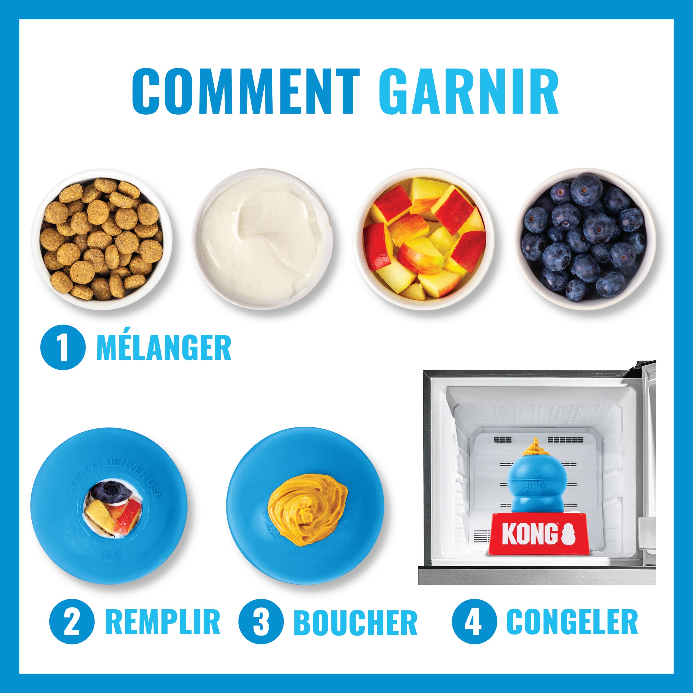•Congelez-le garni des goûts préférés de votre chiot pour un jeu prolongé