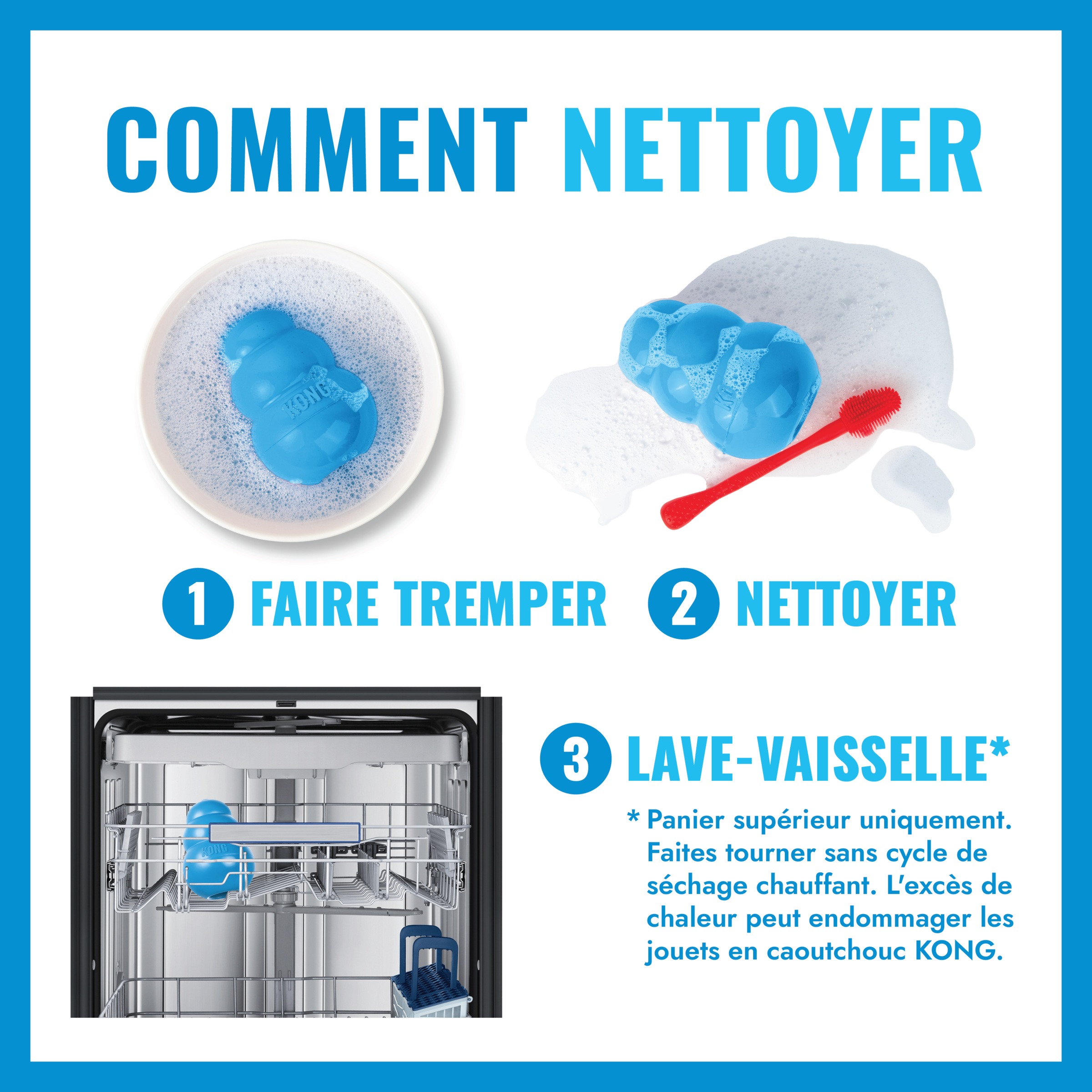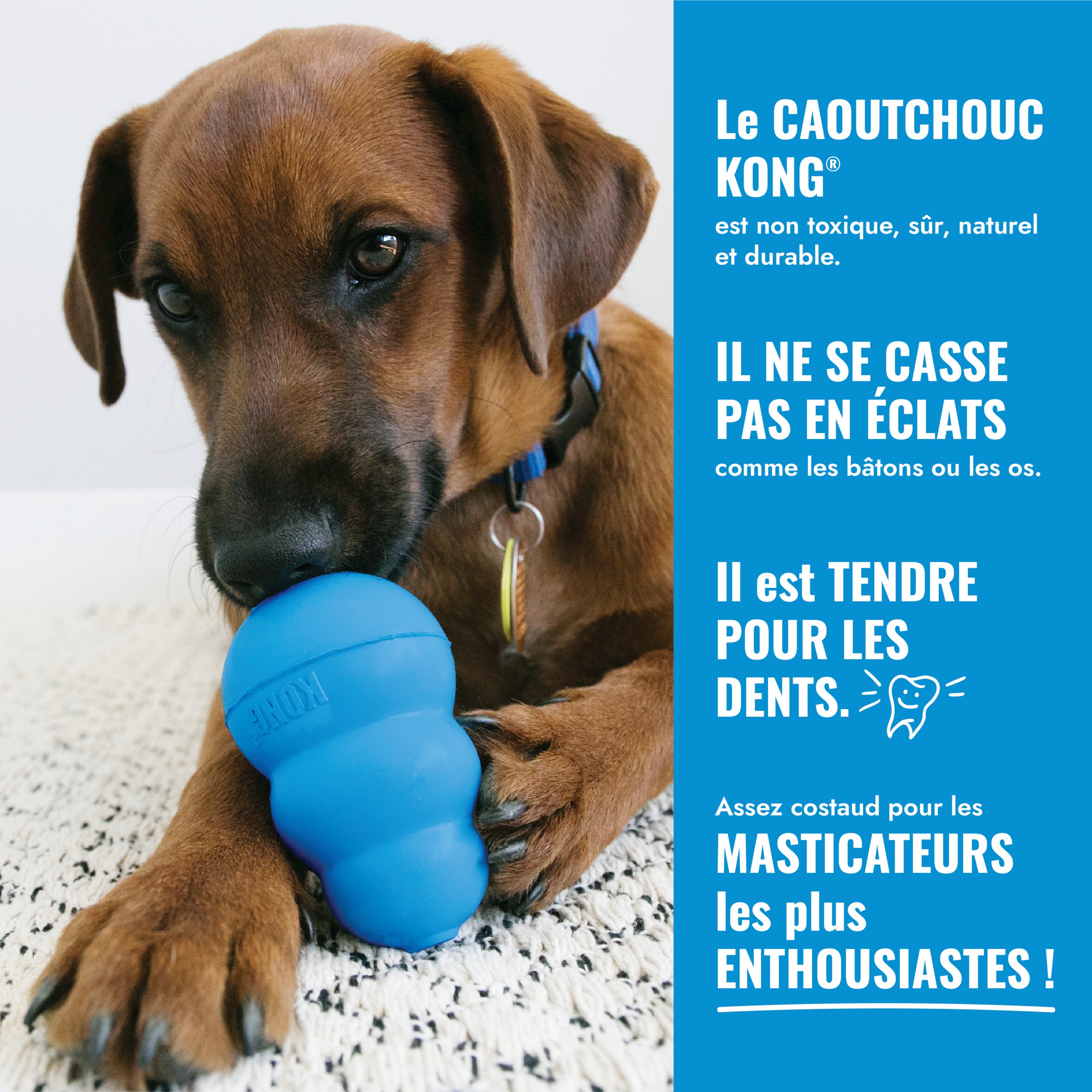 •Le caoutchouc tendre du KONG est conçu pour s’adapter aux dents et gencives des chiots